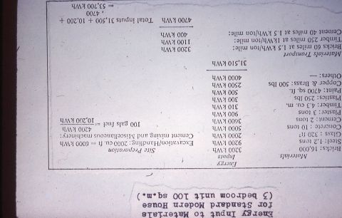 Energy input standard house materials chart
