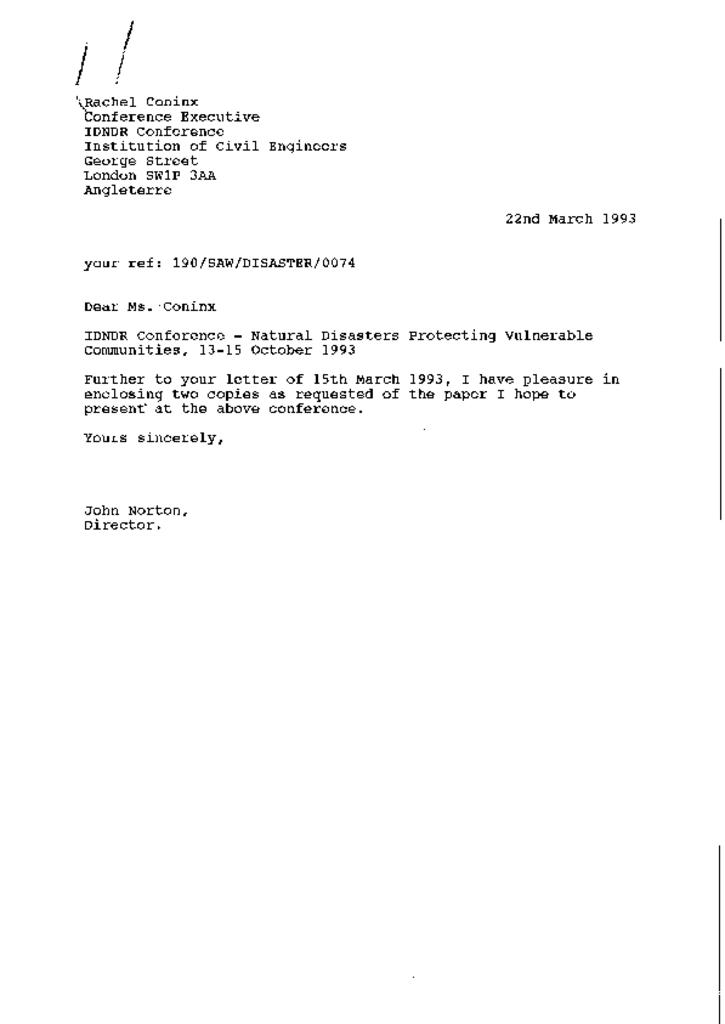 Paper presented for International Decade for Natural Disaster Reduction (IDNDR) conference in London