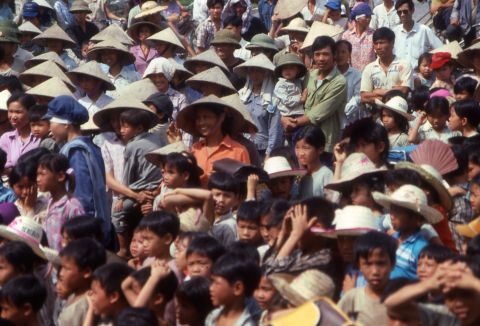 DWFVIE040143 Ninh Van commune puppet show on typhoon damage prevention draws large crowd 1992