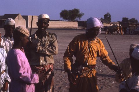 Men with rifles and traditional knives