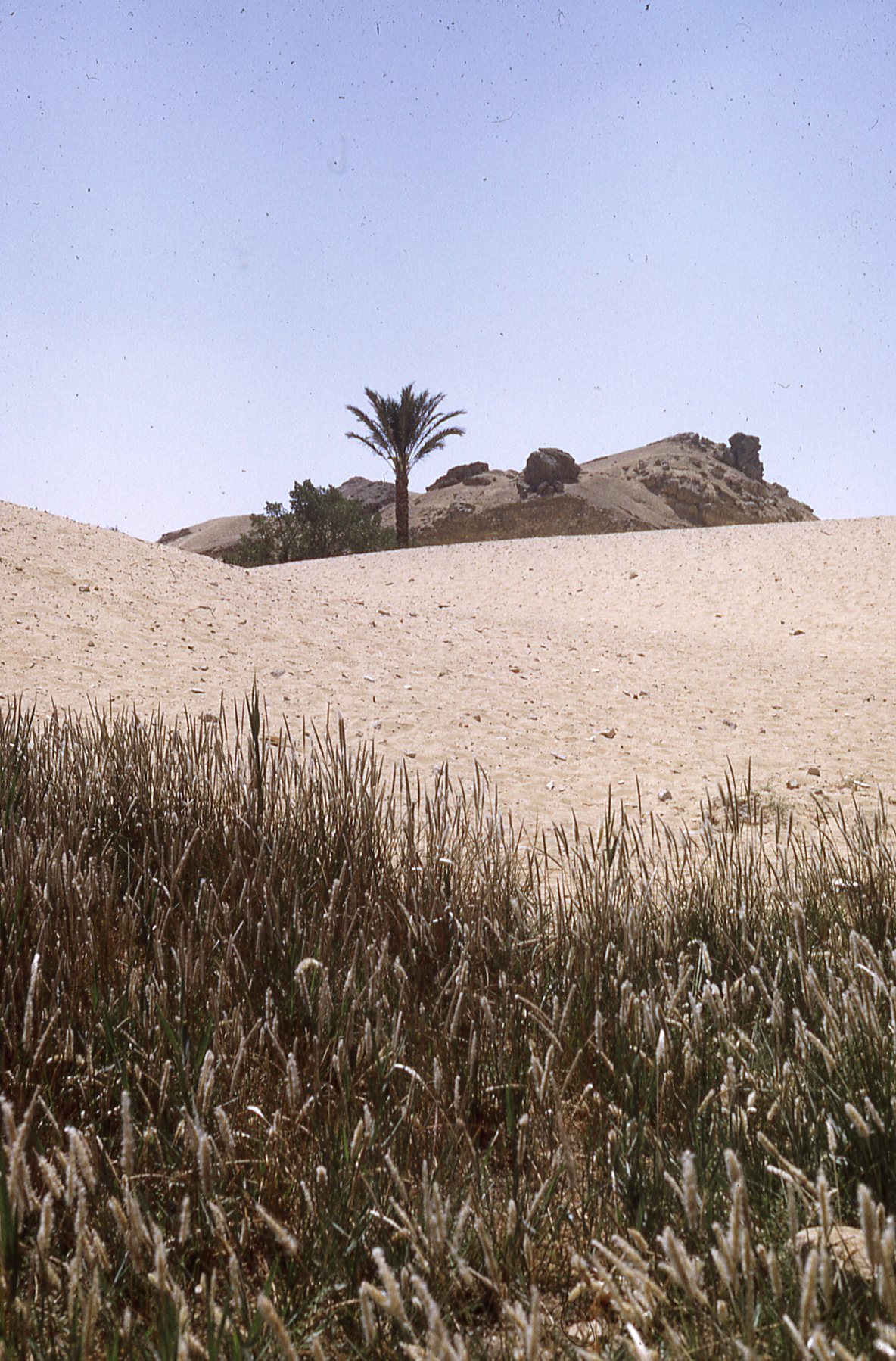 Palm tree and greenery in desert