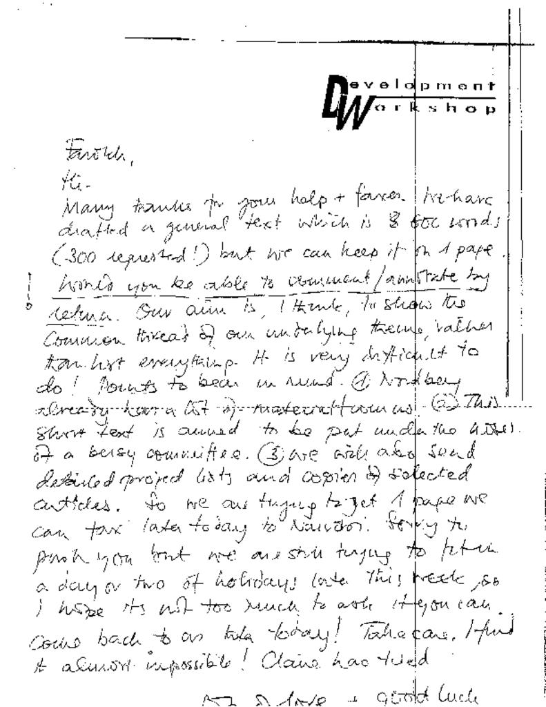 This item is provided under Creative Commons Attribution NonCommercial: https://creativecommons.org/licenses/by-nc/4.0. Please credit Development Workshop Digital Archive. Permission to publish; copy; or otherwise use this material for commercial purposes must be obtained from Development Workshop.